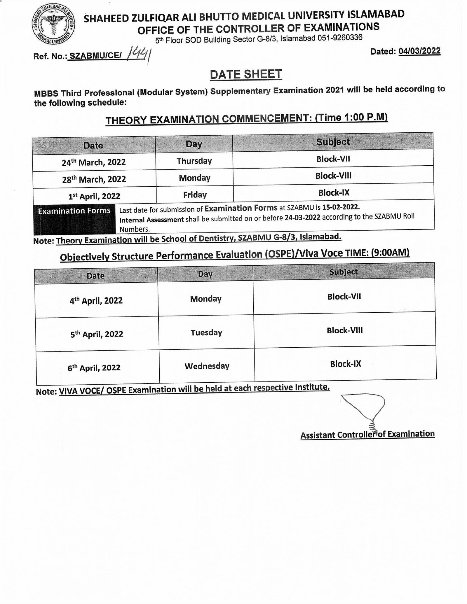 The wait is over. All those applicants who are waiting for the SZABMU MBBS supplementary exam date sheet will now get ready. According to the latest notification, Shaheed Zulfiqar Ali Bhutto Medical University announced the date sheet of the MBBS supplementary exam for the year 2021. All those applicants who studied for an MBBS degree from the SZABMU institute will now download the date sheet from here. According to the datasheet, the MBBS supply exams will commence from 24th March 2022 and end on 6th April 2022. However, the SZABMU institute announced the date sheet of the first, second, and third professional modular system. It is also pertinent to mention that the Viva Voce examination will be held at each respective institute.