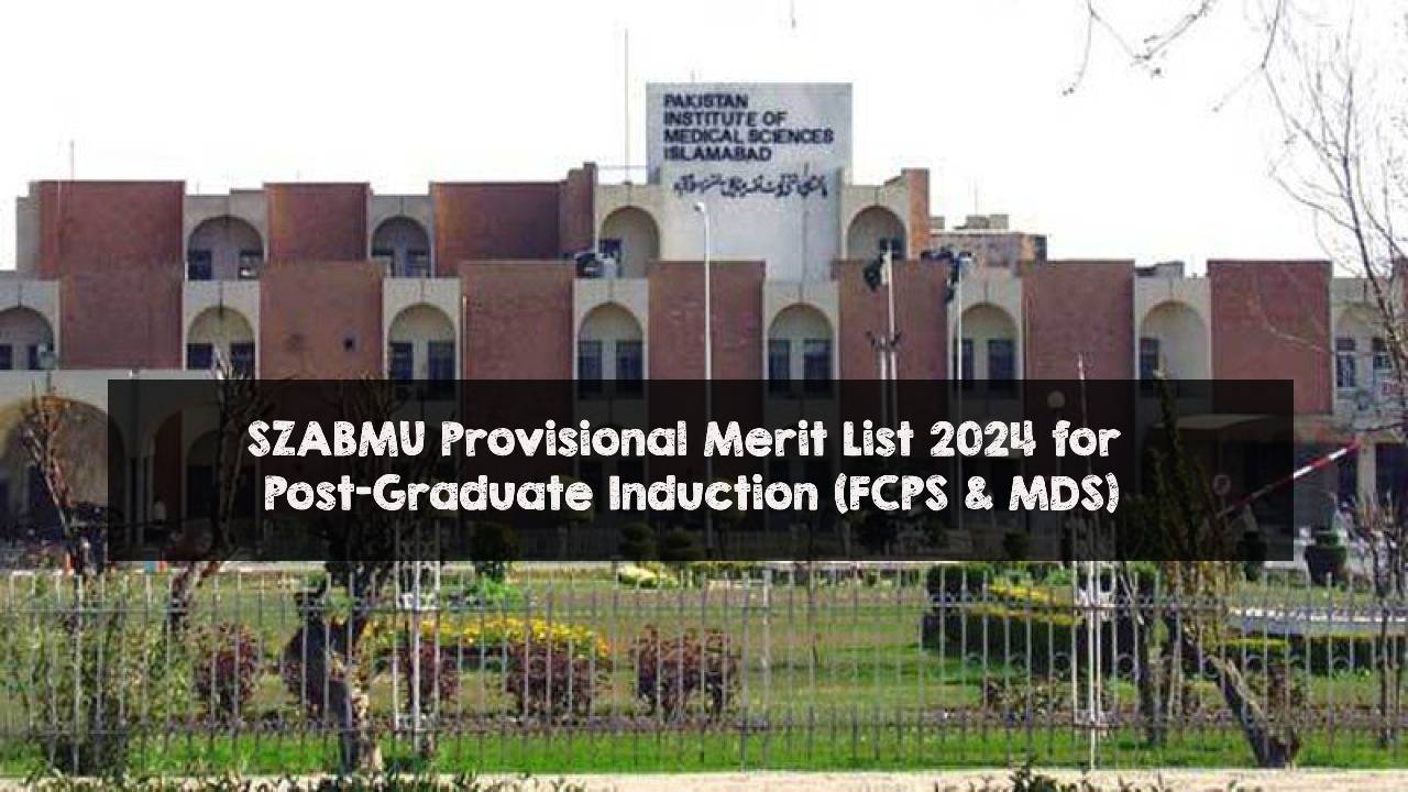 SZABMU Post-Graduate Programs 2024 Provisional Merit List