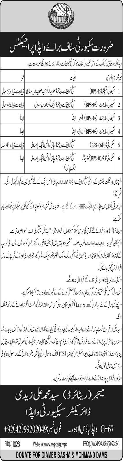 Are you looking for security officer jobs in a government organisation? If yes, then this post is very beneficial for you. Today, WAPDA announced multiple career jobs for session 2023. They are seeking highly qualified and active security staff. The job position is in Lahore. The job is on a contract basis. Applicant must be a retired army person at the Subedar / Naib Subedar rank. The last date of application is 5 October 2023. So, what are you waiting for? Go and apply now.