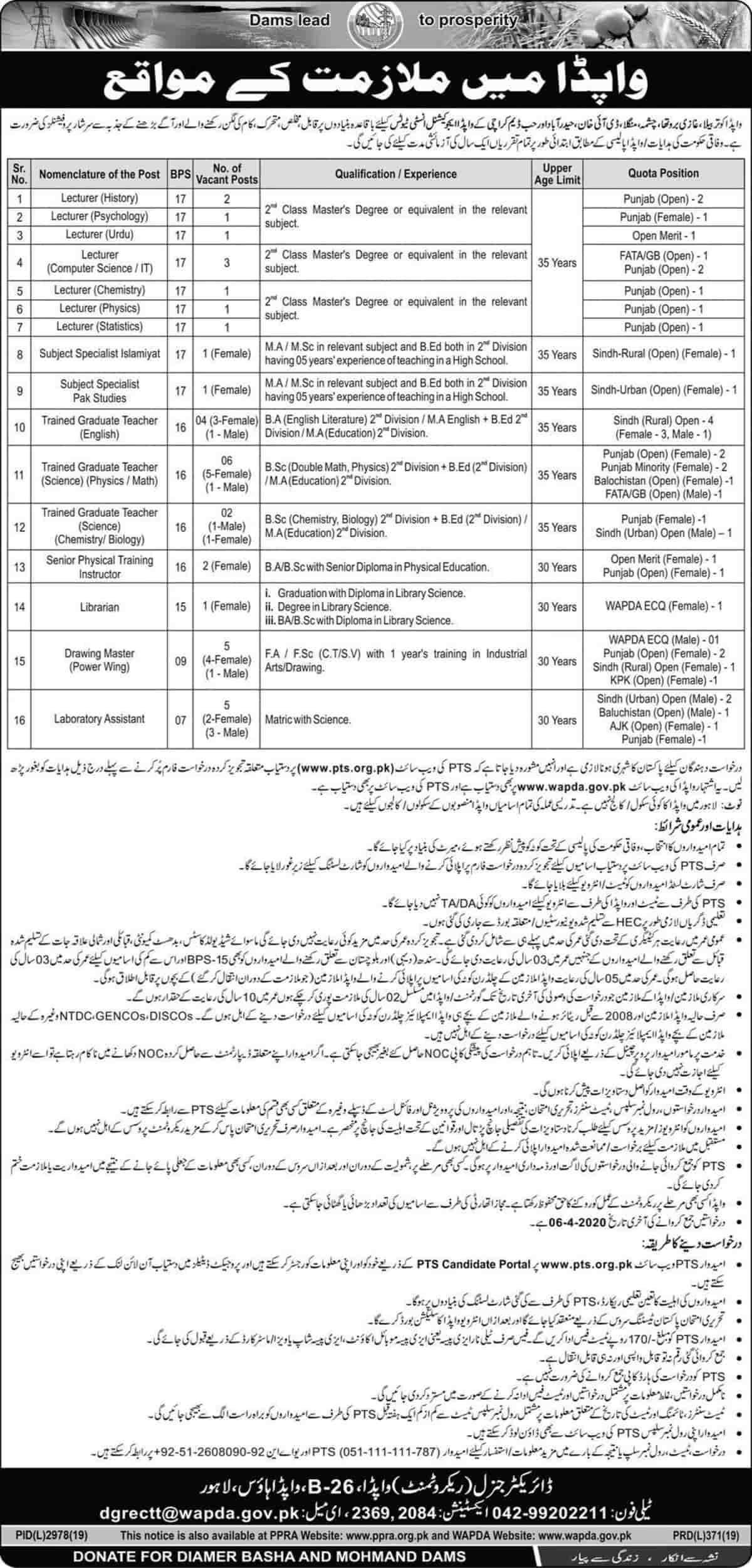 WAPDA Teaching JOBS MARCH 2020